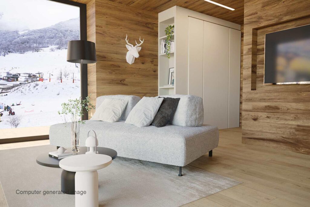 La livraison est prévue pour la saison de ski 2026. Chaque unité sera livrée entièrement meublée, avec parking privé et borne de recharge pour voiture électrique.