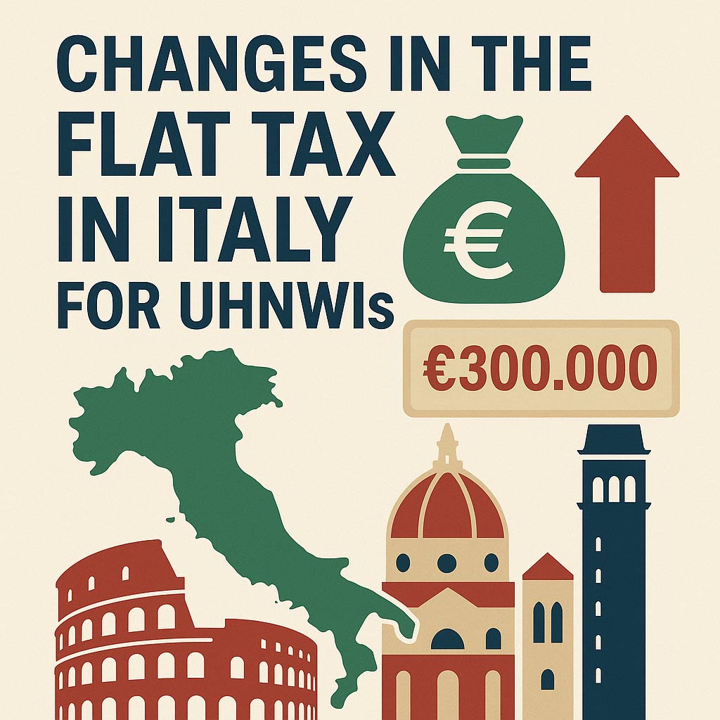 Italy’s Flat Tax regime has been one of the most attractive incentives in Europe for Ultra High Net Worth Individuals considering a relocation. With the 2026 Budget Law, the italian government has introduced a new adjustment that raises the annual substitute tax from Euro 200.000 to Euro 300.000 for the main taxpayer and from Euro 25.000 to Euro 50.000 for each eligible family member.